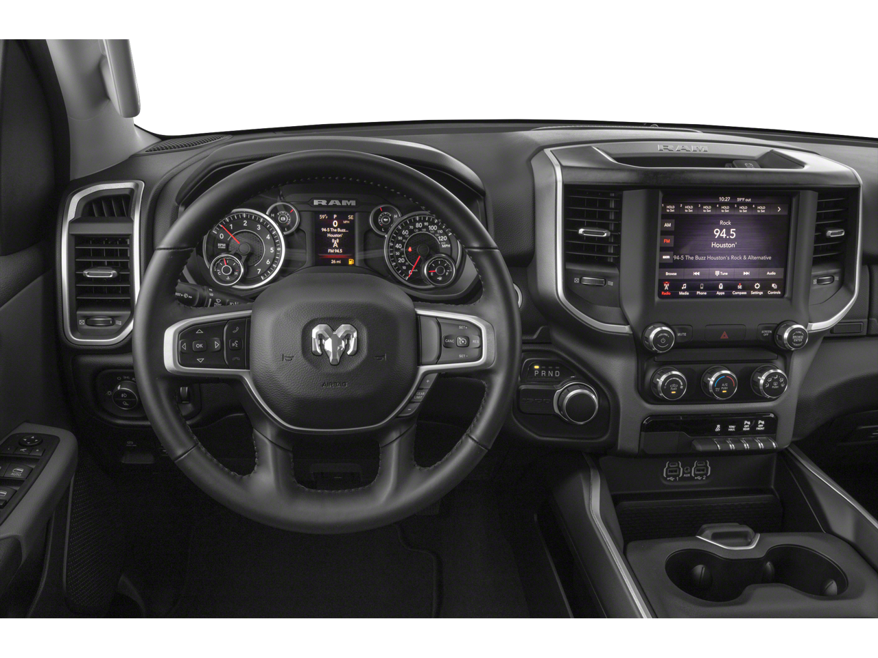 A PREVIOUS DAILY RENTAL, 115V Auxiliary Power Outlet, 2 USB Full Function/Charge Only Media Hub, 8.4 Touchscreen Display, Big Horn Level 2 Equipment Group, Cluster 7.0 TFT Color Display, Dampened Tailgate, Front fog lights, Heated Front Seats, Heated Steering Wheel, ParkSense Front/Rear Park Assist w/Stop, ParkView Rear Back-Up Camera, Power 4-Way Driver Lumbar Adjust, Power 8-Way Driver Seat, Power Adjustable Pedals, Quick Order Package 25Z Big Horn/Lone Star, Radio: Uconnect 4 w/8.4 Display, Rear Power Sliding Window, Remote Start System, Single Disc Remote CD Player, SiriusXM Satellite Radio, Steering Wheel Mounted Audio Controls.