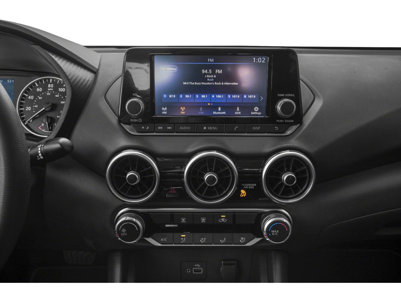 - Radio: AM/FM w/RDS/MP3/Aux-In -inc: 8" color display w/multi-touch control, streaming audio via Bluetooth®, Bluetooth® hands-free phone system, hands-free text messaging assistant, Siri eyes-free, Google Assistant voice recognition, NissanConnect featuring Apple CarPlay and Android Auto, 1 additional front USB (type C) and 1 charge-only USB (type A) center console and SiriusXM radio w/advanced audio features