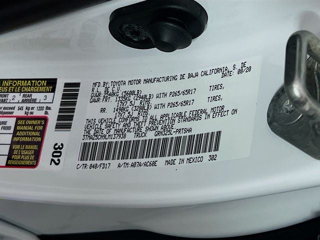 120V/400W Deck Mounted AC Power, Active Cruise Control, Apple CarPlay/Android Auto, Black Tailgate Insert, Blind Spot Monitor w/Rear Cross Traffic Alert, Exterior Parking Camera Rear, Front fog lights, Heated door mirrors, Illuminated entry, Rear Parking Assist Sonar, Remote keyless entry, Smart Key w/Push Button Start, Technology Package, TRD Sport Package, Wheels: 17 x 7.5J Machined Alloy.