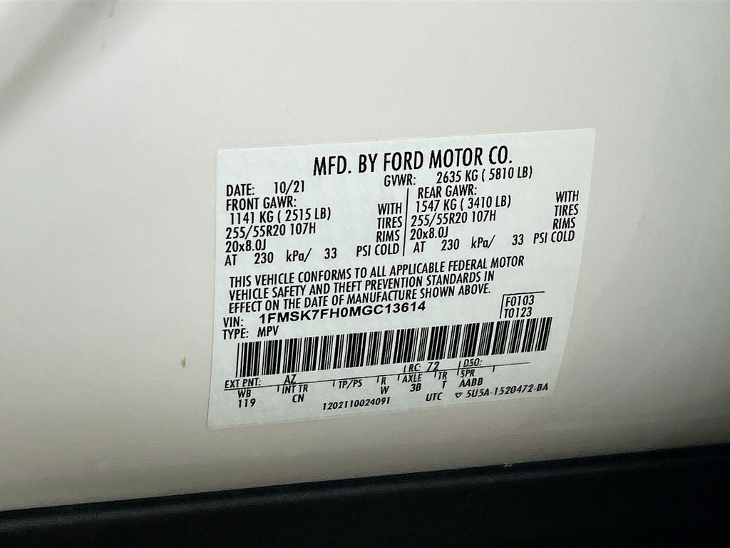 2021 Ford Explorer Limited White RWD 21/28 City/Highway MPG