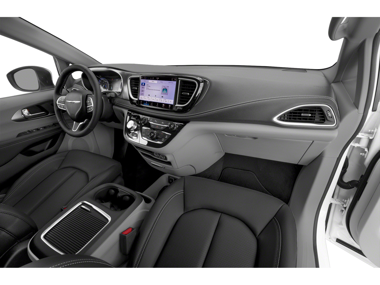 Inside, the Pacifica Touring L shines with leather-trimmed seating, a spacious, thoughtfully designed cabin, and the legendary Stow n Go seating, letting you switch effortlessly from people-hauler to cargo champion. Stay seamlessly connected through the Uconnect infotainment system with a large touchscreen, Apple CarPlay, and Android Auto, keeping music, navigation, and hands-free calls right at your fingertips.