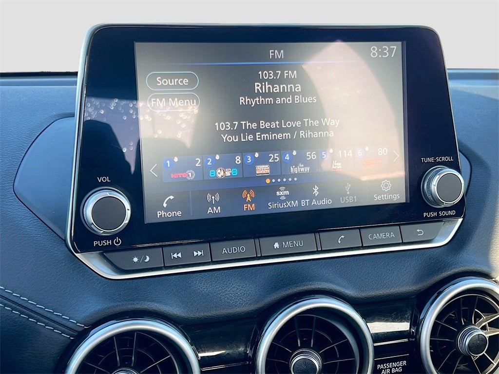 - Radio: AM/FM w/RDS/MP3/Aux-In -inc: 6 speakers plus 2 tweeters in A-pillar, 8" color display w/multi-touch control, streaming audio via Bluetooth®, Bluetooth® hands-free phone system, hands-free text messaging assistant, Siri eyes free, Google Assistant voice recognition w/Apple CarPlay and Android Auto, NissanConnect, (1) front USB connection port (type A), (1) additional front USB (type C) and (1) charge-only USB (type A) center console and SiriusXM radio w/advanced audio features