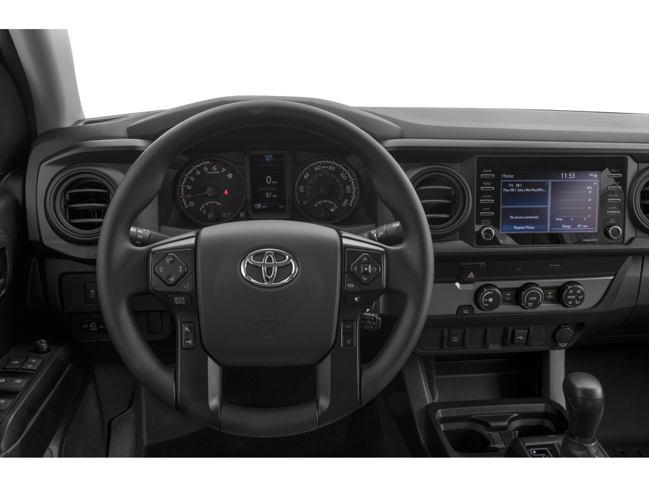 Inside and out, the Tacoma strikes a balance between tough and tech-savvy. The aggressive front grille and wide fender flares command attention, while the cabin keeps you connected with a premium touchscreen interface featuring Apple CarPlay® and Android Auto™ integration. Whether you’re navigating to a remote trailhead or your favorite coffee shop, you'll do it in a cockpit designed for comfort and durability.